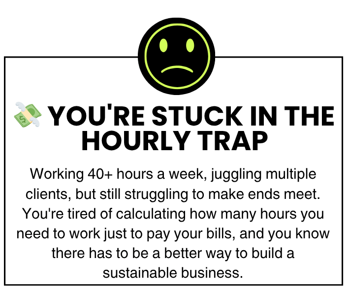 The worst part? I knew I was capable of so much more, but I couldn't figure out how to break free from the hourly trap that was slowly killing my spirit and my bank account.
